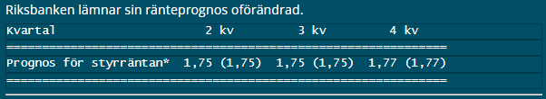 Riksbanken lämnade som väntat styrräntan oförändrad på 1,75 procent och säger också att räntan kommer ligga kvar på denna nivå under en tid framöver. Beslutet var enhälligt väntat och räntebanan lämnades oförändrad jämfört med tidigare prognos, men osäkerheten kring utsikterna har ökat markant till följd av utvecklingen i Mellanöstern.